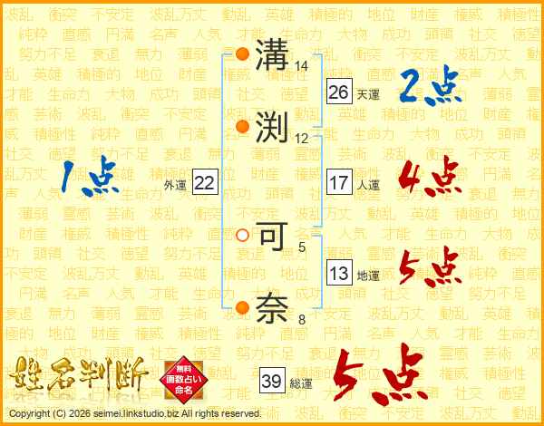 溝(14画)渕(12画) 可(5画)奈(8画)