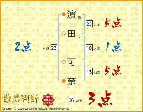濵田可奈さんの天運は23画の5点!