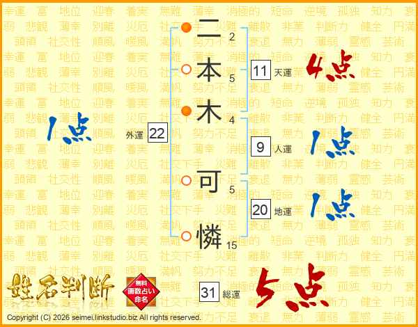 二本木可憐さんの総運は31画の5点!