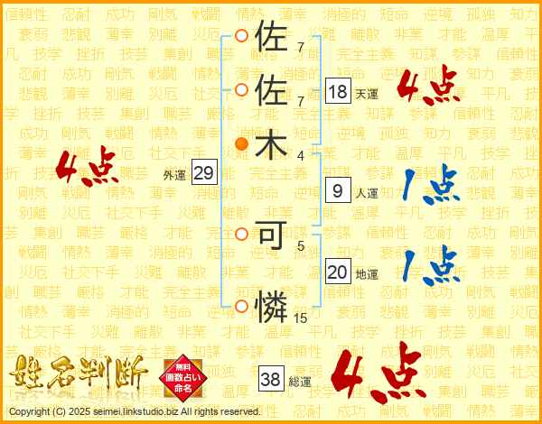 佐(7画)佐(7画)木(4画) 可(5画)憐(15画)