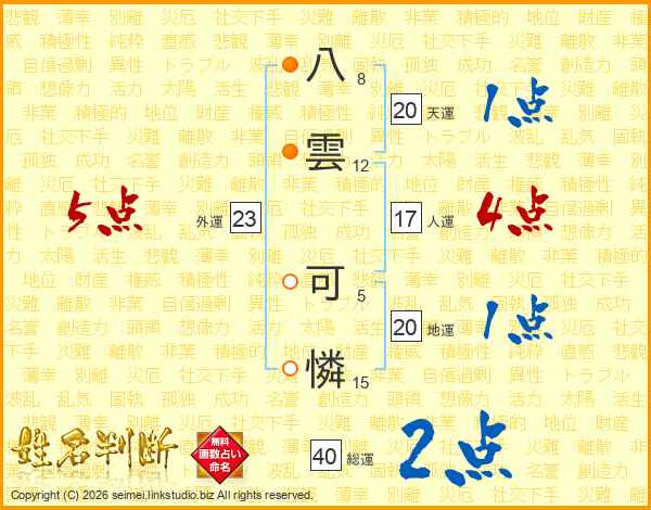 八雲可憐さんの外運は23画の5点!