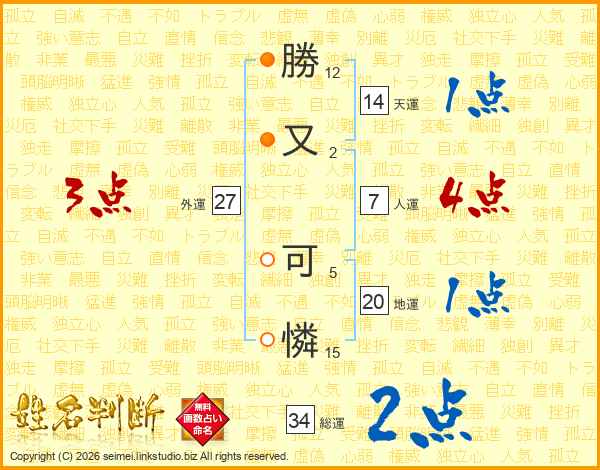勝又可憐さんの天運は14画の1点!