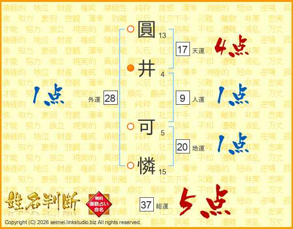 圓井可憐さんの総運は37画の5点!
