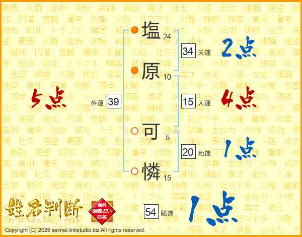塩原可憐さんの外運は39画の5点!