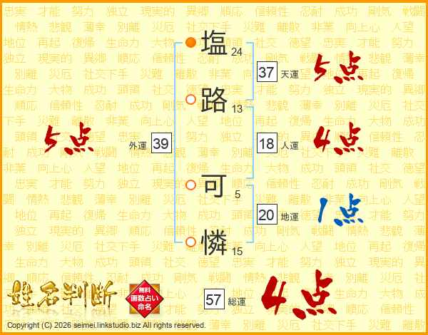 塩路可憐さんの外運は39画の5点!