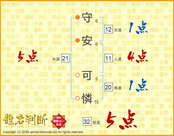 守安可憐さんの総運は32画の5点!