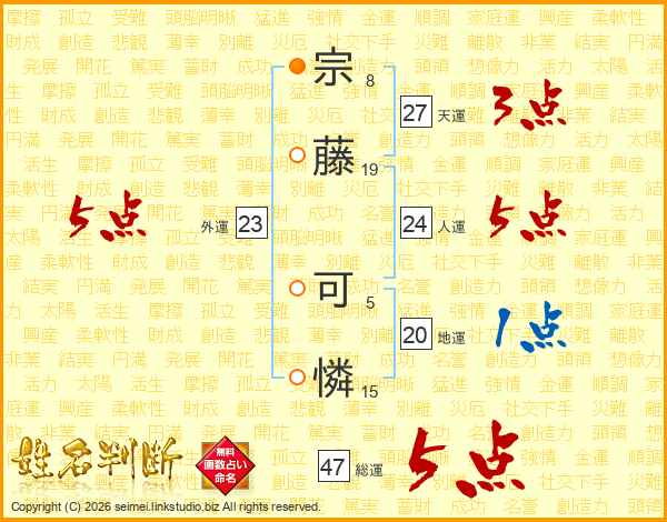 宗(8画)藤(19画) 可(5画)憐(15画)