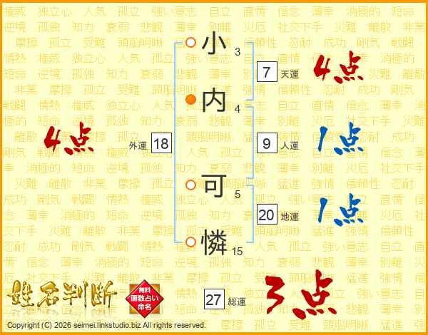 小内可憐さんの外運は18画の4点!