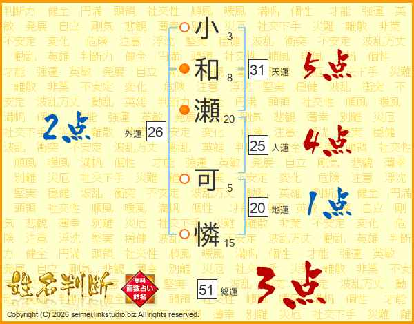 小和瀬可憐さんの総運は51画の3点!