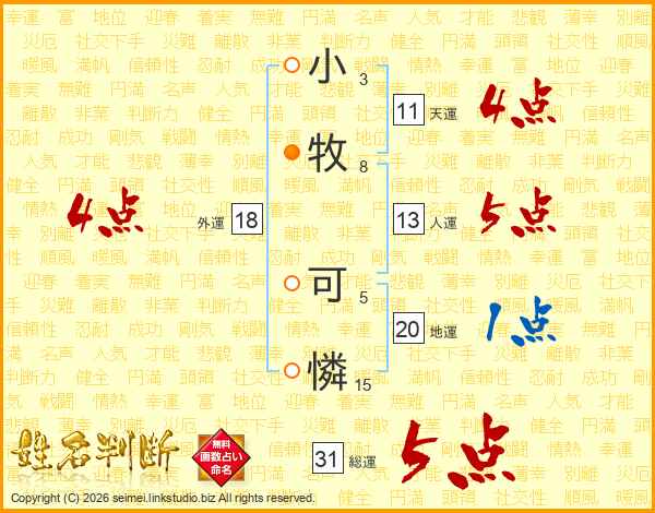 小牧可憐さんの総運は31画の5点!