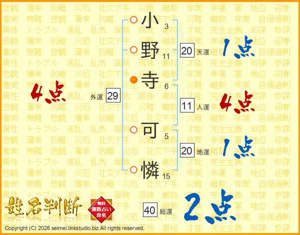 小野寺可憐さんの人運は11画の4点!