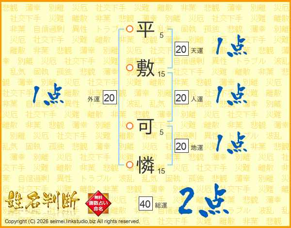 平敷可憐さんの総運は40画の2点!