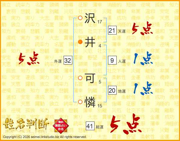 沢井可憐さんの総運は41画の5点!