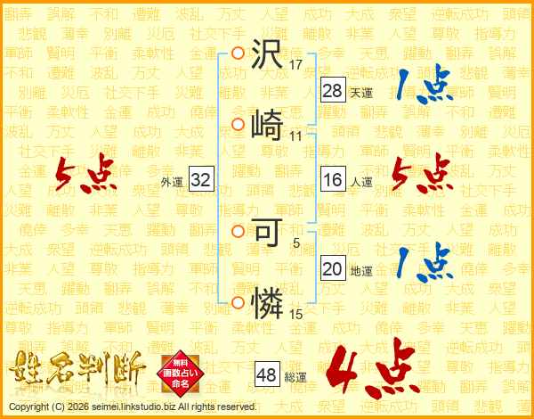 沢崎可憐さんの総運は48画の4点!