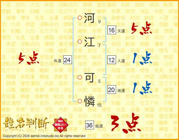 河江可憐さんの外運は24画の5点!