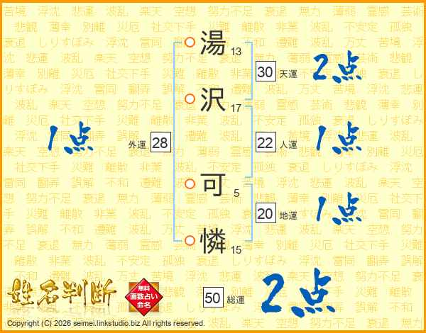 湯沢可憐さんの総運は50画の2点!