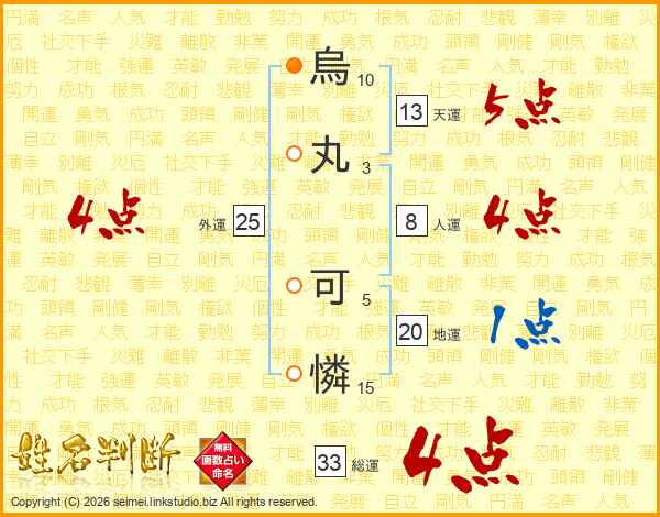 烏丸可憐さんの総運は33画の4点!