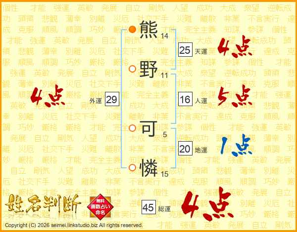 熊野可憐さんの総運は45画の4点!