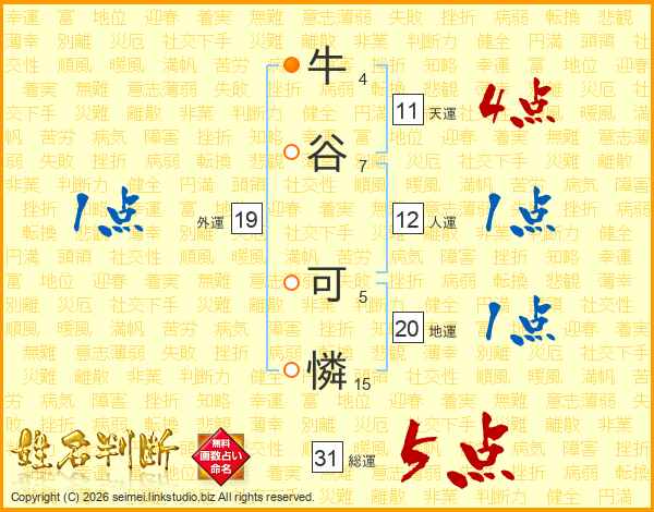 牛谷可憐さんの総運は31画の5点!