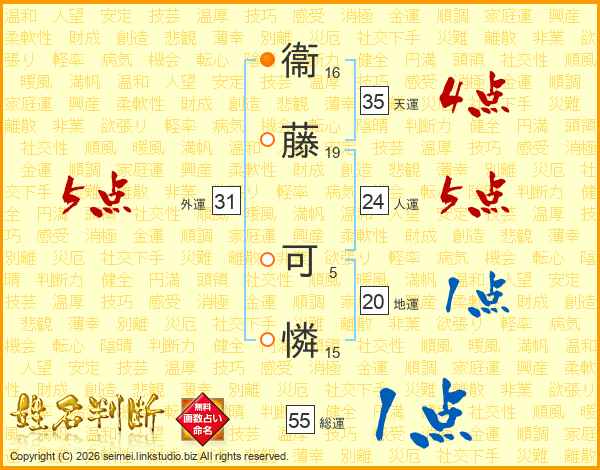 衞(16画)藤(19画) 可(5画)憐(15画)