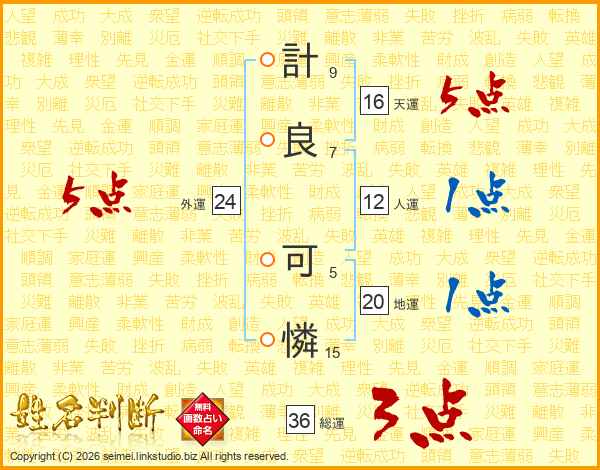 計(9画)良(7画) 可(5画)憐(15画)