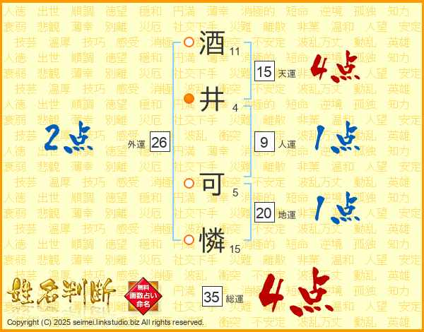 酒井可憐さんの総運は35画の4点!