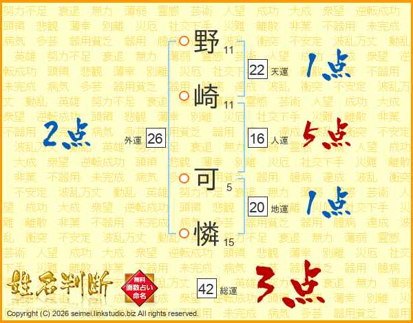 野崎可憐さんの総運は42画の3点!