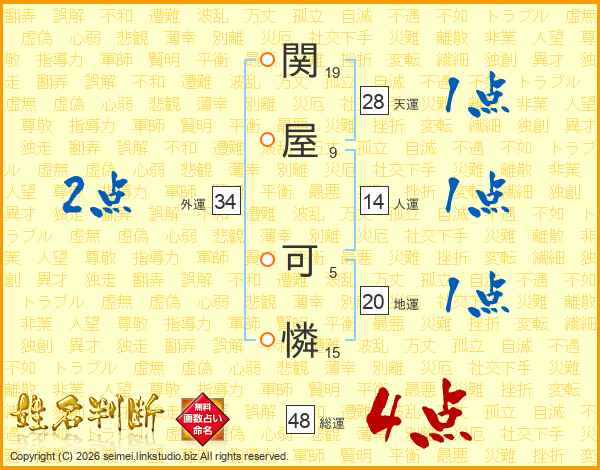 関屋可憐さんの総運は48画の4点!