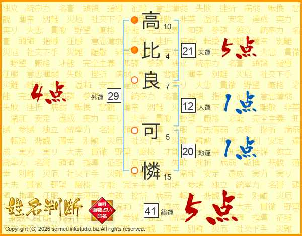 高(10画)比(4画)良(7画) 可(5画)憐(15画)