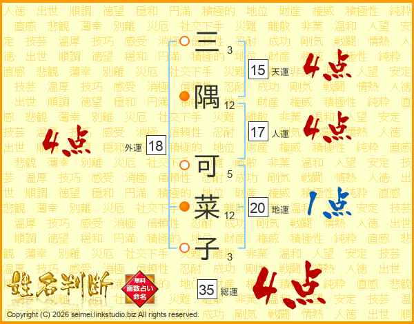 三(3画)隅(12画) 可(5画)菜(12画)子(3画)