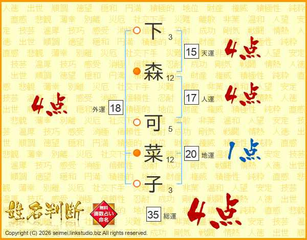 下森可菜子さんの総運は35画の4点!