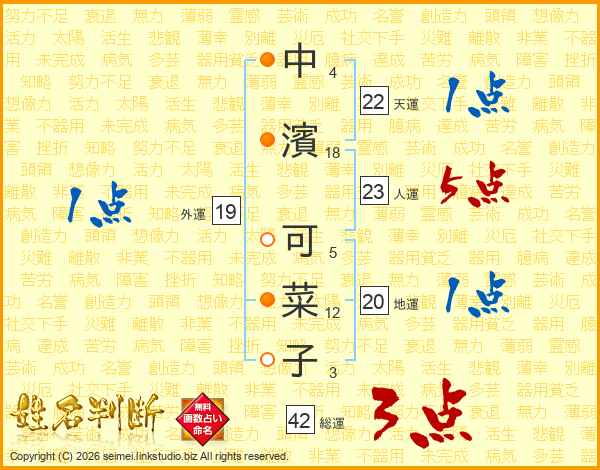 中濱可菜子さんの人運は23画の5点!