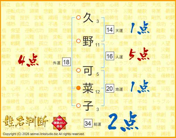 久野可菜子さんの総運は34画の2点!
