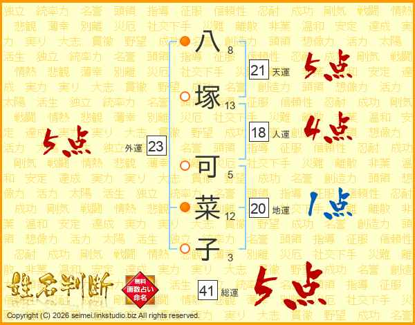 八塚可菜子さんの総運は41画の5点!