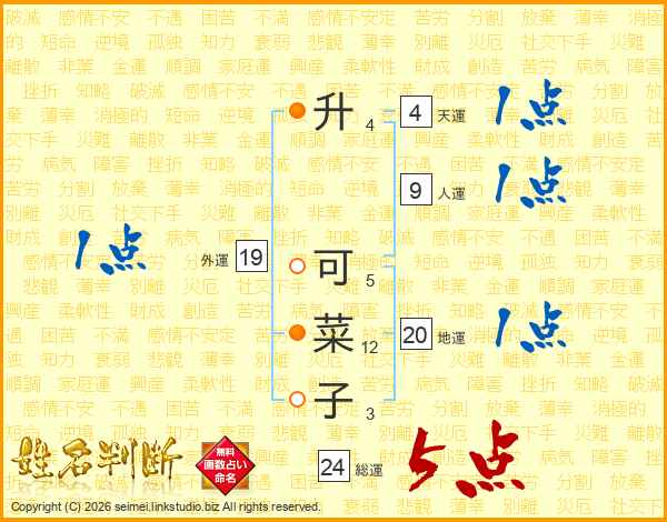升可菜子さんの総運は24画の5点!