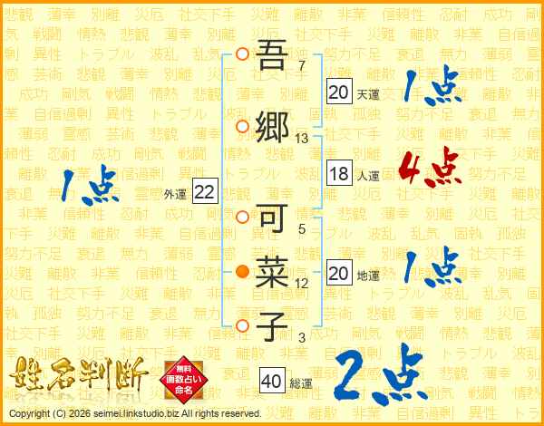 吾郷可菜子さんの総運は40画の2点!