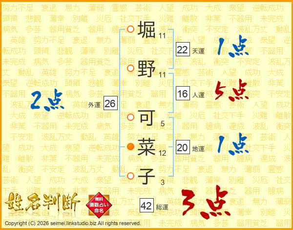 堀野可菜子さんの総運は42画の3点!