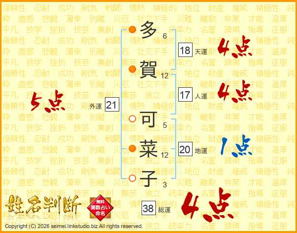 多賀可菜子さんの総運は38画の4点!