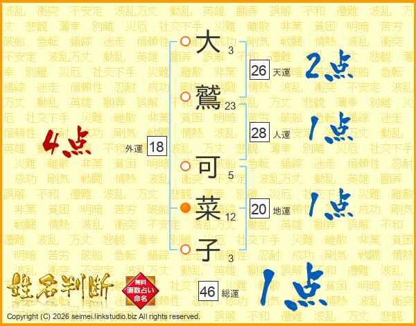 大鷲可菜子さんの総運は46画の1点!