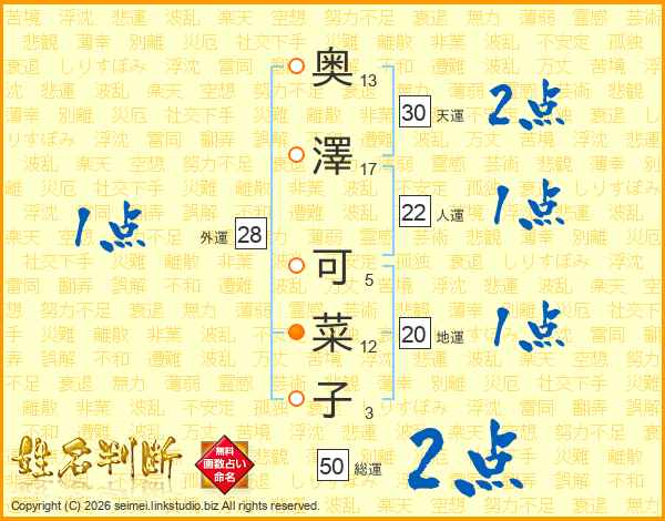 奥澤可菜子さんの総運は50画の2点!