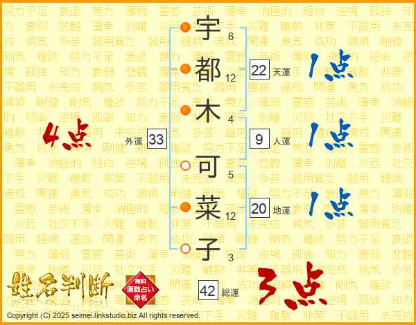 宇都木可菜子さんの外運は33画の4点!