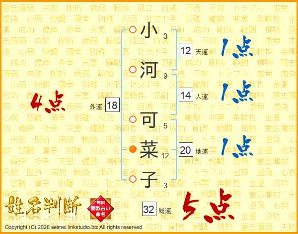 小河可菜子さんの総運は32画の5点!