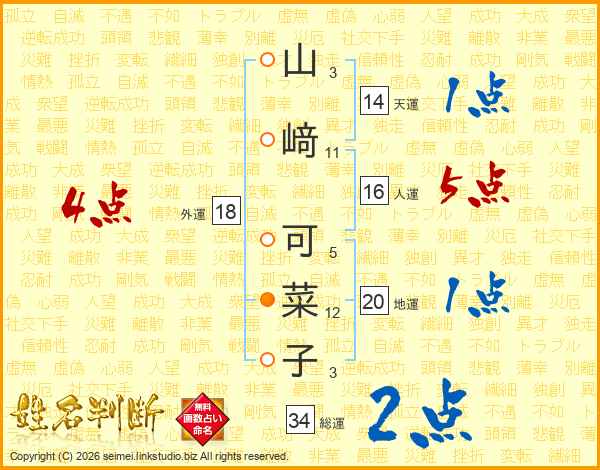 山﨑可菜子さんの天運は14画の1点!