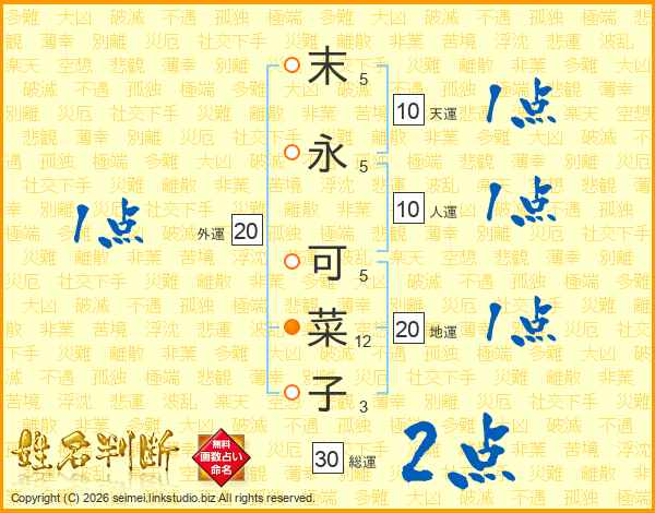 末(5画)永(5画) 可(5画)菜(12画)子(3画)