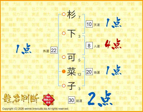 杉下可菜子さんの総運は30画の2点!