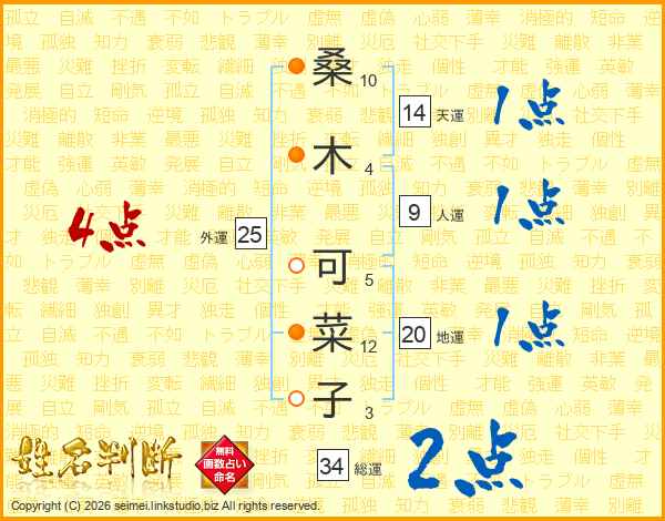 桑木可菜子さんの総運は34画の2点!