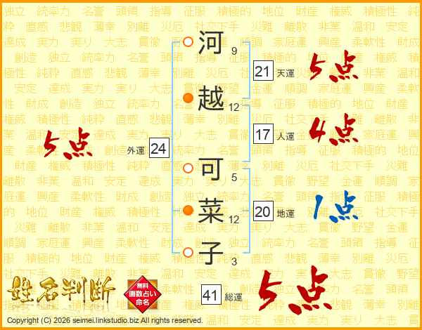 河越可菜子さんの外運は24画の5点!