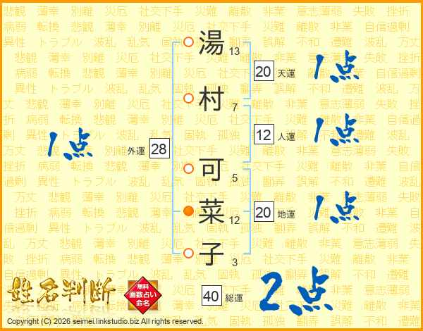 湯村可菜子さんの人運は12画の1点!