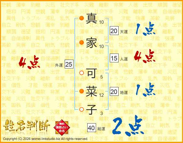 真家可菜子さんの外運は25画の4点!