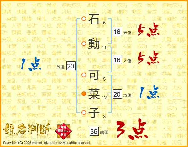 石動可菜子さんの天運は16画の5点!